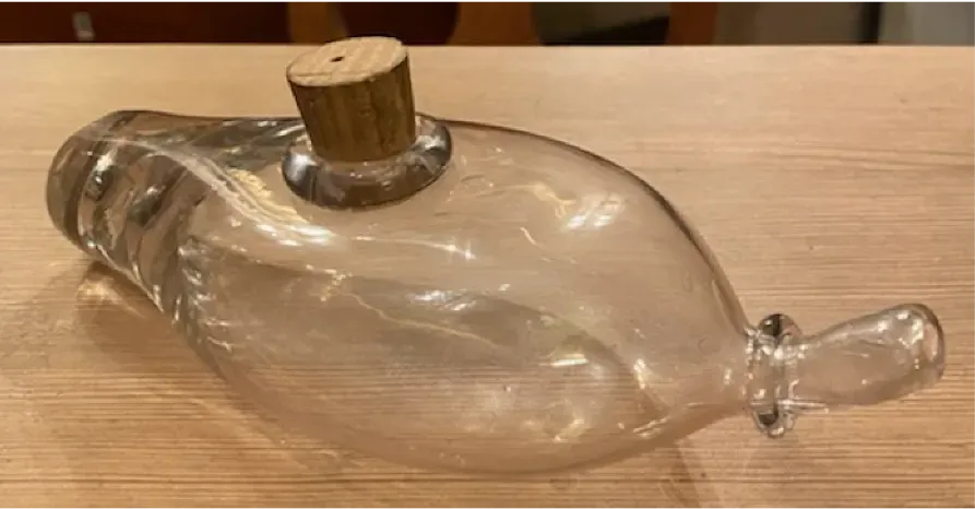Glass er et materiale som egner seg til mange praktiske formål, særlig til oppbevaring av flytende væsker. Apoteker-glass og medisinglass (Nönkers) i mange størrelser og fasonger var en viktig artikkel. Sekskantete karafler ble kalt Flasker, mens grønne flasker som bare var til oppbevaring, ble kalt Boutellier.